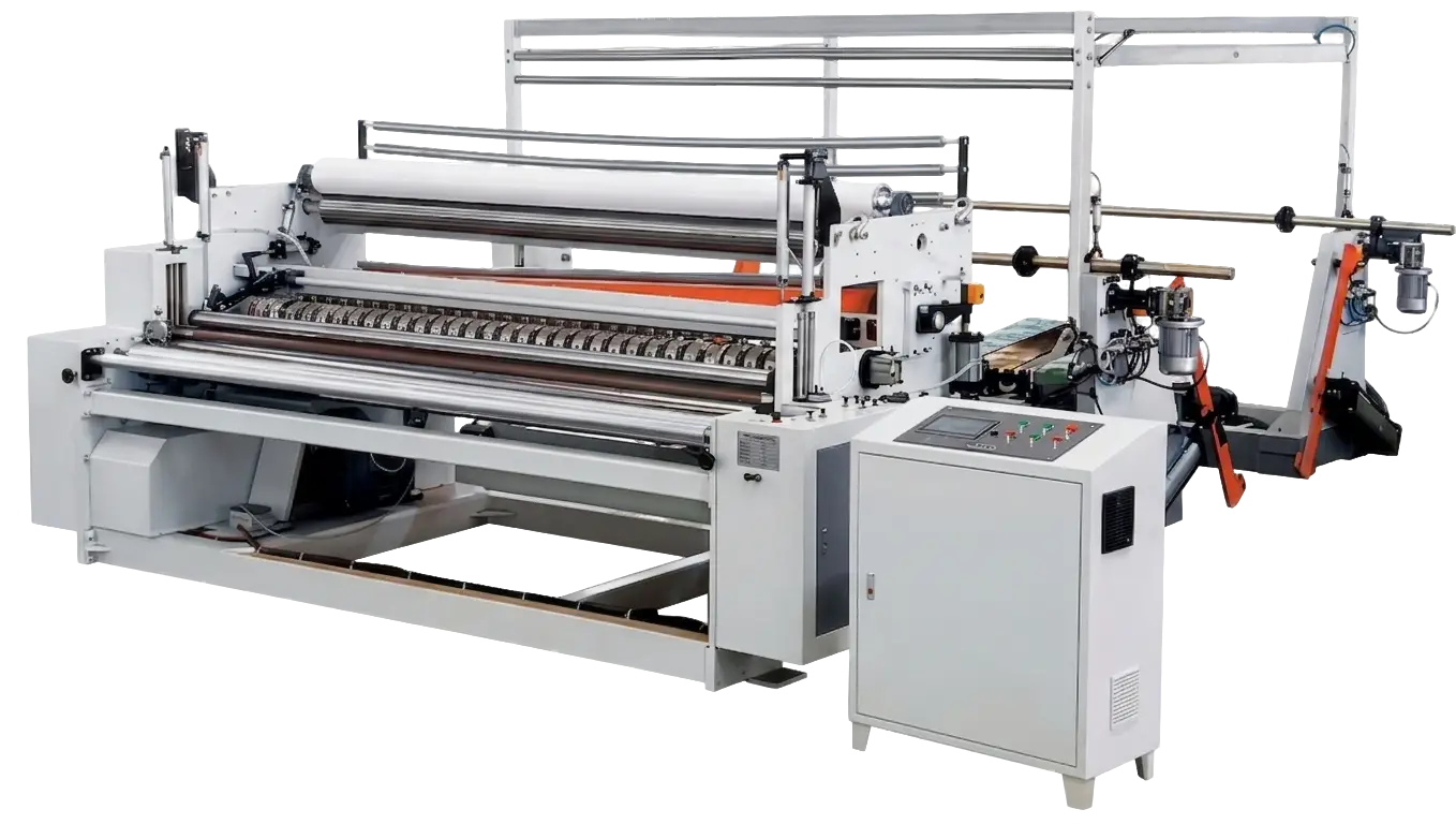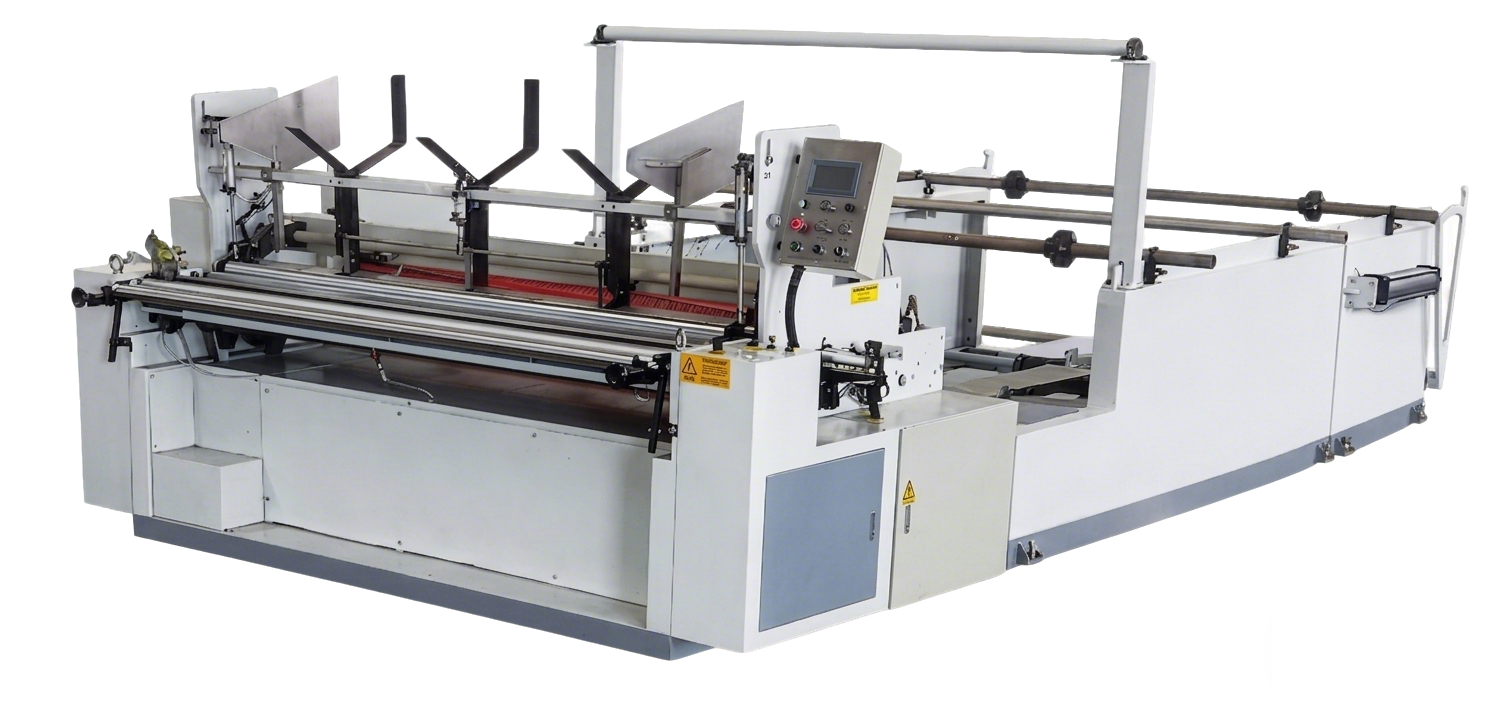 - Equipped with synchronized slitters that simultaneously completes rewinding, embossing, perforating, and slitting processes in one machine.